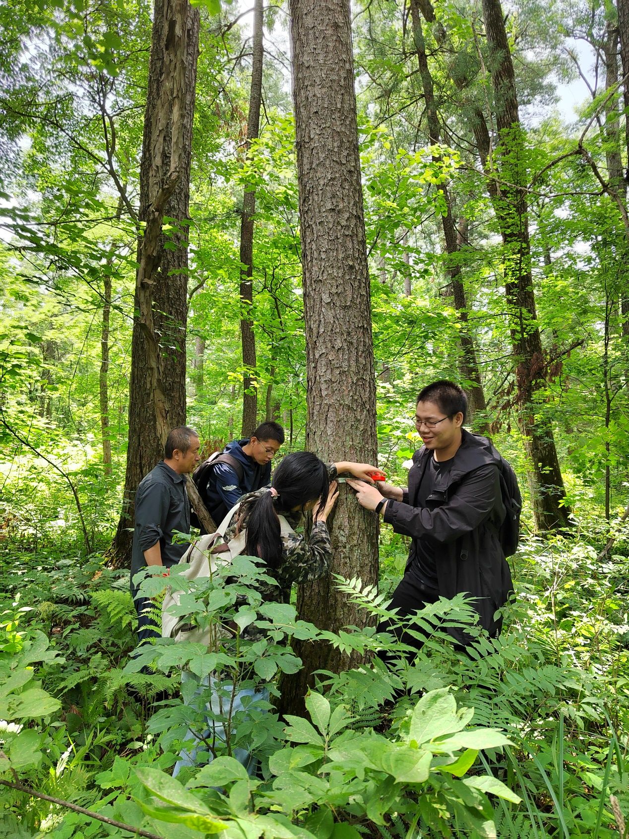 11日上午,与华东师大的实践团队一起,学习植物样方设置方法,通过确定边界、拉线、定桩等实践操作,调查样方内胸径大于5㎝木本植物的物种、胸径、树高、坐标和状态等信息,了解如何开展森林资源监测与评估。同时学习了草本样方的建设流程。当天下午,师生共同参观了被中国林学会命名为第五批全国林草科普基地的露水河林业局红松种子园,通过实地踏查参观,了解到该种子园保育了遗传品质多样的红松资源,通过利用结实丰产型优树的接穗进行繁育并能大量生产商品种子的林分,比实生的红松林分提前20年进入结实期,有效提高了红松的经济效益,是调整林业产业结构、增加林业收入、促进农民致富的有效途径。