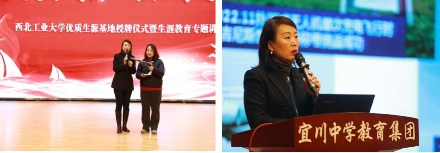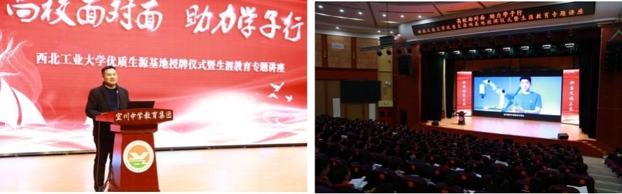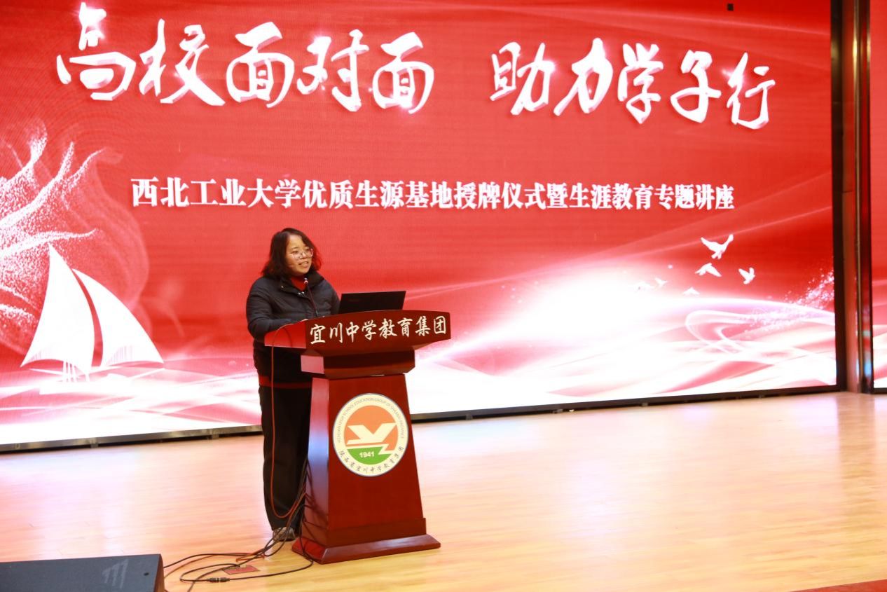 王莉代表学校向宜川中学赠送纪念品,并以《以终为始-职业规划筑梦前行》为题,从点燃理想、追逐理想、实现理想三个方向介绍了生涯规划、能力培养、价值塑造等内容,分享了身边优秀学子的案例,勉励同学们明确目标、坚定信心,找准自己的兴趣爱好,做好学科和专业规划,以行之有效的行动去实现梦想。