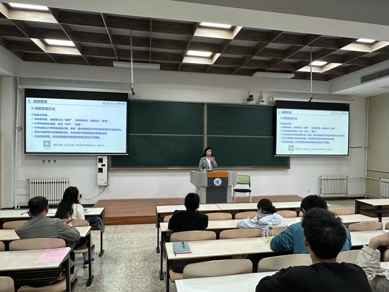 随后武怡琼围绕本科生选课与退课、成绩管理等方面进行了深入讲解,帮助同学们更加清晰地了解教学环节的重要内容和节点。