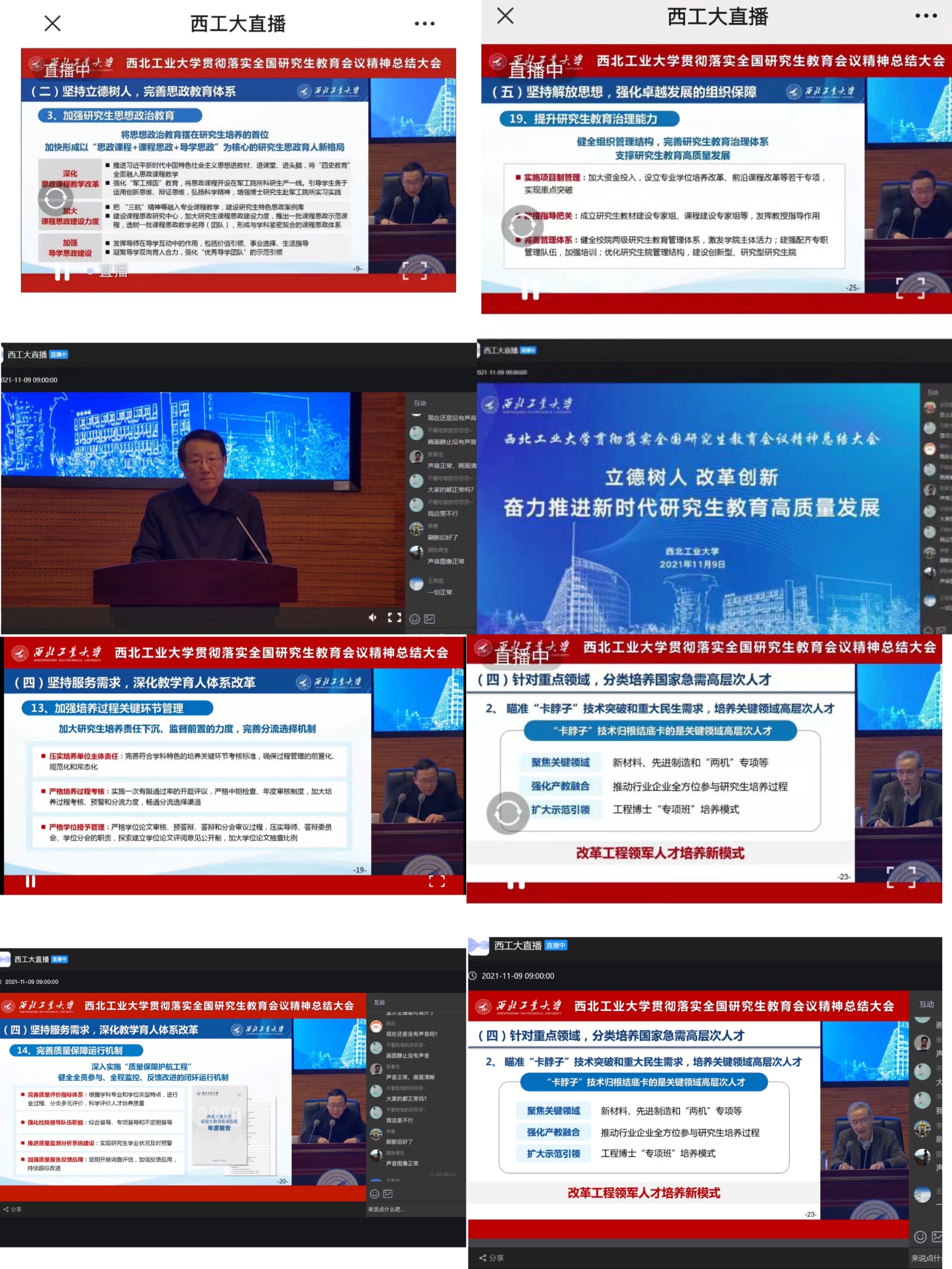 为进一步深入贯彻落实全国研究生教育会议精神、全面深化研究生教育改革、持续提升人才培养质量,11月9日上午,17k小说 党政领导班子成员、研究生导师及研究生代表、办公室相关管理人员等分别在主会场、分会场和在线会场参加了学校“贯彻落实全国研究生教育会议精神总结大会”。
