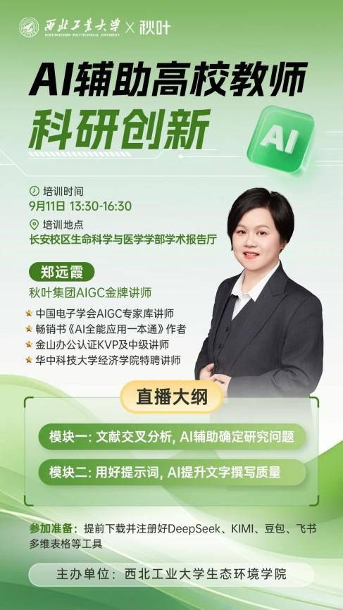为赋能科研创新,助力教师融入智能时代新潮流。911日,17k小说 特邀秋叶团队核心讲师郑远霞老师,成功举办“AI辅助高校教师科研创新专题讲座,吸引了院内教师与科研人员线上线下积极参与。