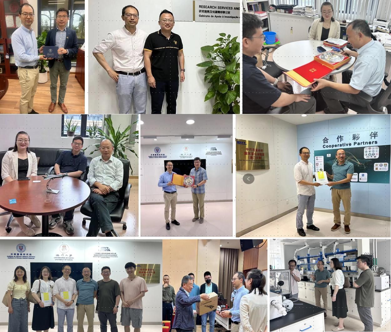 5月7日,代表团参观了健康科学学院、中华医药研究院及中药质量研究国家重点实验室,并分别拜会了澳门大学全球事务总监王瑞兵,澳门大学研究服务及知识转移办公室主任兼澳门大学珠海研究院院长王春明,澳门大学健康科学学院副院长陈国凯、讲座教授沈汉明,澳门大学中华医药研究院院长兼中药质量研究国家重点实验室主任陈新、副院长李铭源、副院长李鹏,澳门中药研发中心主任讲座教授王一涛等人,感谢了澳门大学各位同仁的大力支持,双方就学生交流、科研合作、共建实验室、人才引进、优质生源推荐等方面进行了交流。