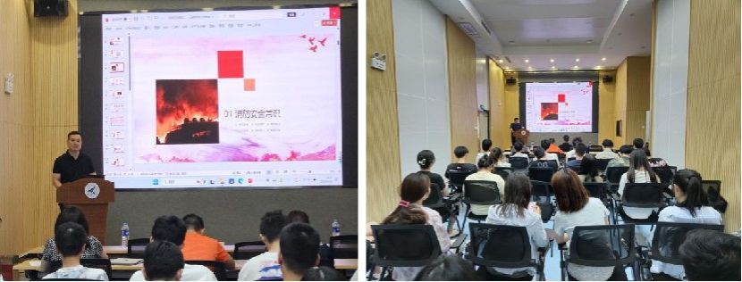 检查结束后进行了实验室消防安全知识讲座和消防演练活动,段利兵主持会议,各实验室安全员以及30余人参加了此次讲座与演练,学校保卫处消防科胡涛老师对消防安全知识进行了细致且全面的介绍,并结合近年来高校和生活中频发的火灾案例,以短视频的形式生动地强调了普及消防安全知识、增强消防安全意识、提升消防自救能力的重要性。