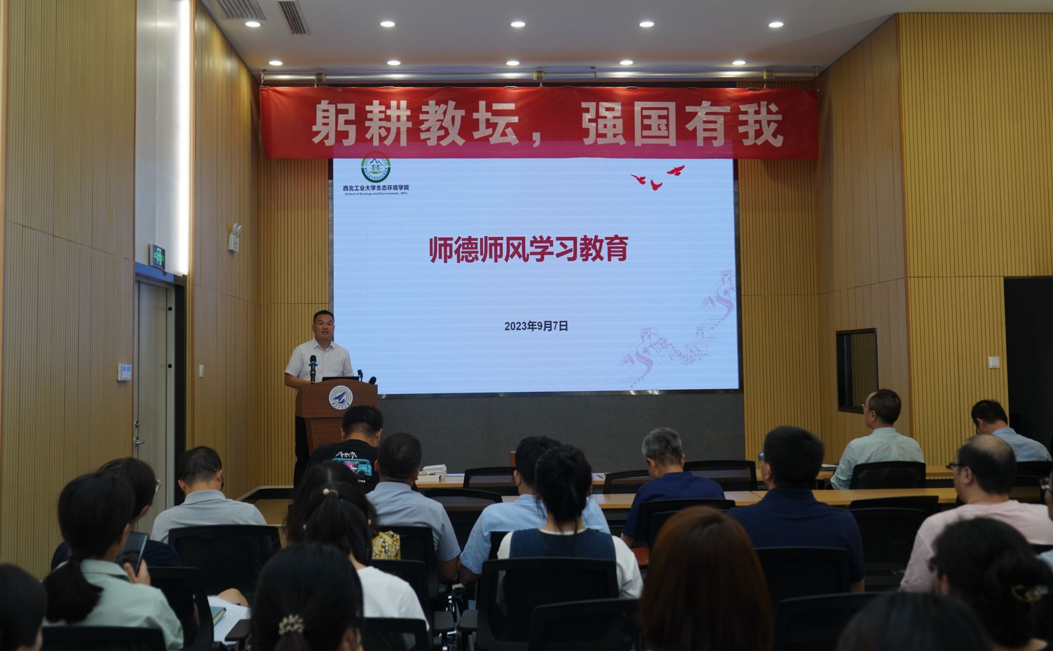 师德失范行为负面清单》等为重点,引导教职工强化规矩意识,坚持廉洁从教。随后,他对学院师德集中学习教育的开展情况进行了总结,并对学院迎接本科教育教学审核评估的相关工作进行了宣讲和安排。