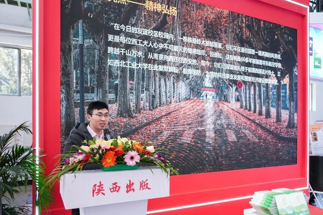 主编贾仕宏老师在现场分享了这本书背后的故事。他提到,尽管西工大是一所工科院校,但校园的美丽给他留下了深刻印象。“西工大校园中究竟有多少种植物?”“它们分别分布在哪里?”,这些疑惑给了他灵感,他组建学生团队开展研究,历时四年,最终完成了这本书。全书共收录了友谊校区和长安校区木本植物53科184种,内容分为植物物种介绍和植物笔记。值得一提的是,植物笔记部分全部由学生撰写,内容不仅涵盖了每种植物的趣味故事,还与学校的历史和文化紧密相连。贾老师表示,希望读者通过这本书感受植物与学校的深厚联系,领略校园植物的独特魅力,同时,也希望本书能成为读者的植物欣赏指南。