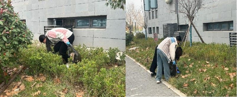 同学们手持环保垃圾袋,以饱满的热情投入到这场意义非凡的环保行动中。他们穿梭在学院楼附近的草坪中,仔细搜寻并清理每一处垃圾,他们的身影成为了春日里一道亮丽的风景线。