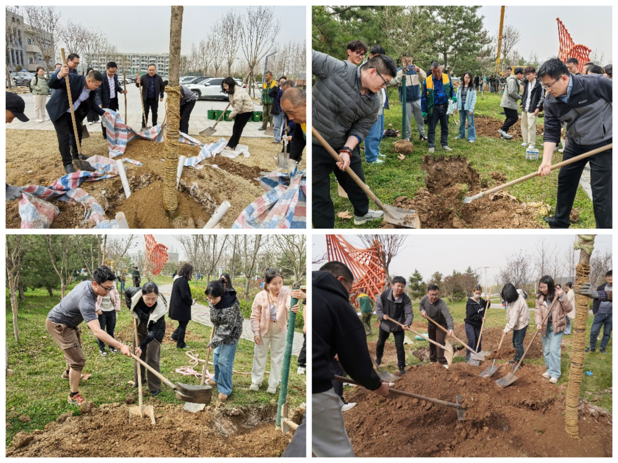 随后,在后勤集团专业园林师傅的指导下,师生们分组进行植树,现场气氛热烈而有序,每个人都积极参与其中,亲身体验劳动的乐趣与价值。挥锹铲土、栽种树木、培土围堰、浇水灌溉每一个步骤都凝聚着大家的汗水与心血。大家在劳动中学到了知识,增长了见识培养了劳动观念和动手能力不仅为校园增添了一抹新绿,更在大家心中种下了劳动的种子。通过亲身实践,大家深刻体会到了劳动的艰辛与不易,也更加珍惜眼前这片由自己亲手栽种下的绿色。