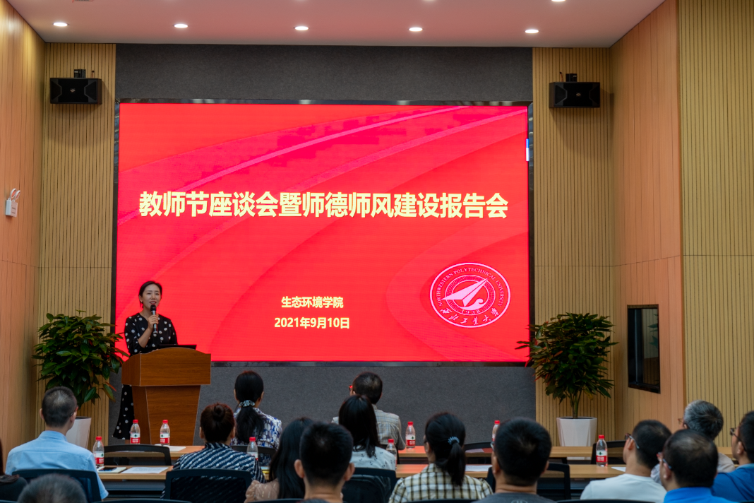 下午两点,教师节座谈会暨师德师风建设报告会在学院报告厅准时开始。会议由学院党总支副书记(主持工作)、副院长牟蕾主持。