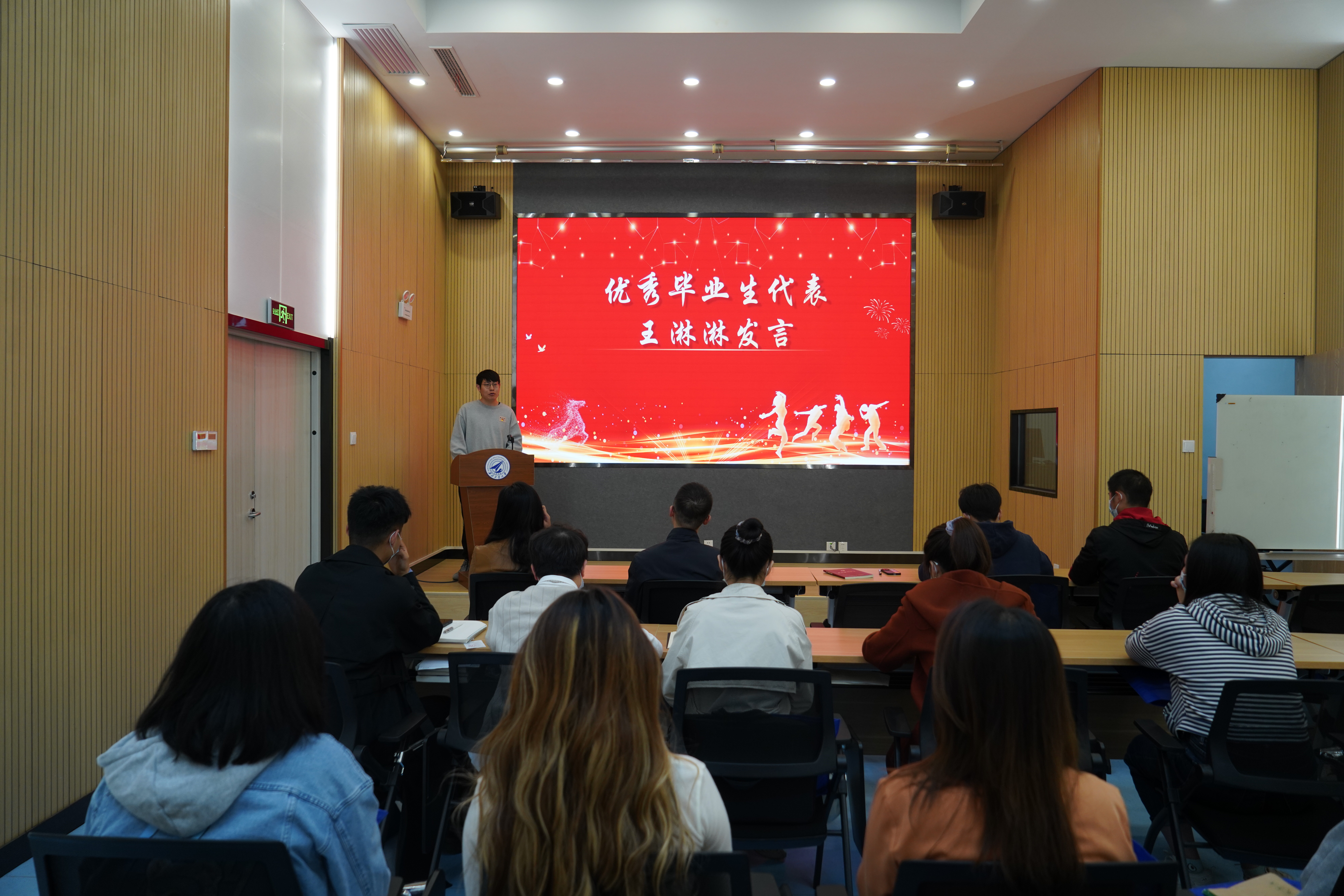 王淋淋作为毕业生代表进行发言,对学院全体教职工致以诚挚的感谢,表达了对校园时光的不舍之情,衷心的希望大家都能够前程似锦。