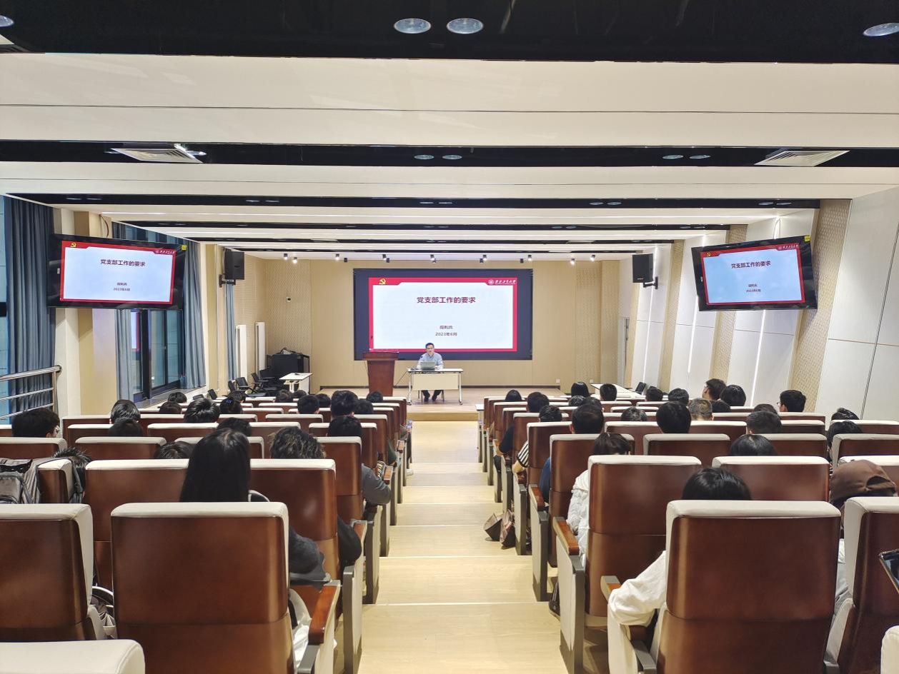 党总支副书记(主持工作)段利兵作题为《党支部工作的要求》的专题报告,四学院师生党支部委员近100人参加。
