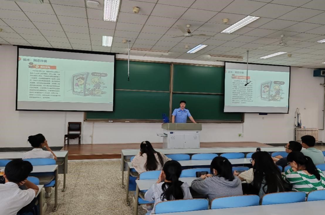 杨警官分别从警惕、识别电信诈骗的手段和让学生如何不成为电信诈骗的帮凶两个主题给同学们进行讲解,并以发生在同学们身边的实际案例为切入点,介绍了杀猪盘、网恋骗局、刷单返利、视频诈骗、投资理财等电信诈骗的常见手段和套路,让大家了解电信诈骗团伙作案手法,并告知大家如何辨别真伪、提高警惕,遇到类似情况时能够保持头脑清醒、做出正确的判断。